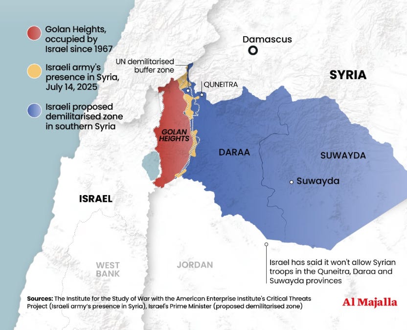 In a video address to Israeli Druze that same day, Netanyahu, the architect of the 2018 nation-state law that formalised all non-Jews as second-class citizens (including the Druze), announced, “My brothers, the Druze citizens of Israel, the situation in Suweyda in southwestern Syria is very serious. We are acting to save our Druze brothers and to eliminate the gangs of the regime,” referring to the Syrian government.
